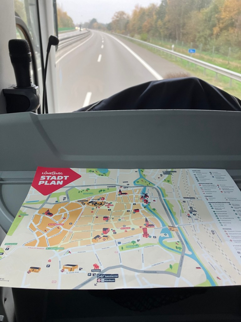 An early start, so grabbed some pastries from the buffet before disembarking for the excursion to Medieval Lüneburg. The coach was waiting by the gangway and all had boarded by 8.30.
