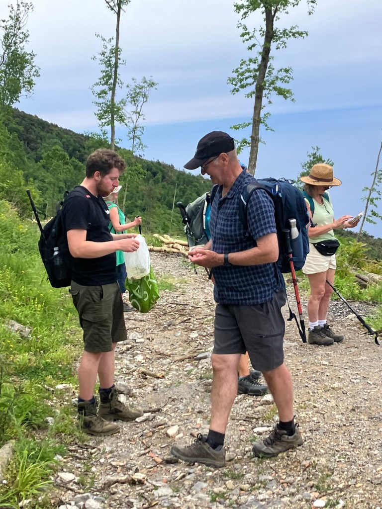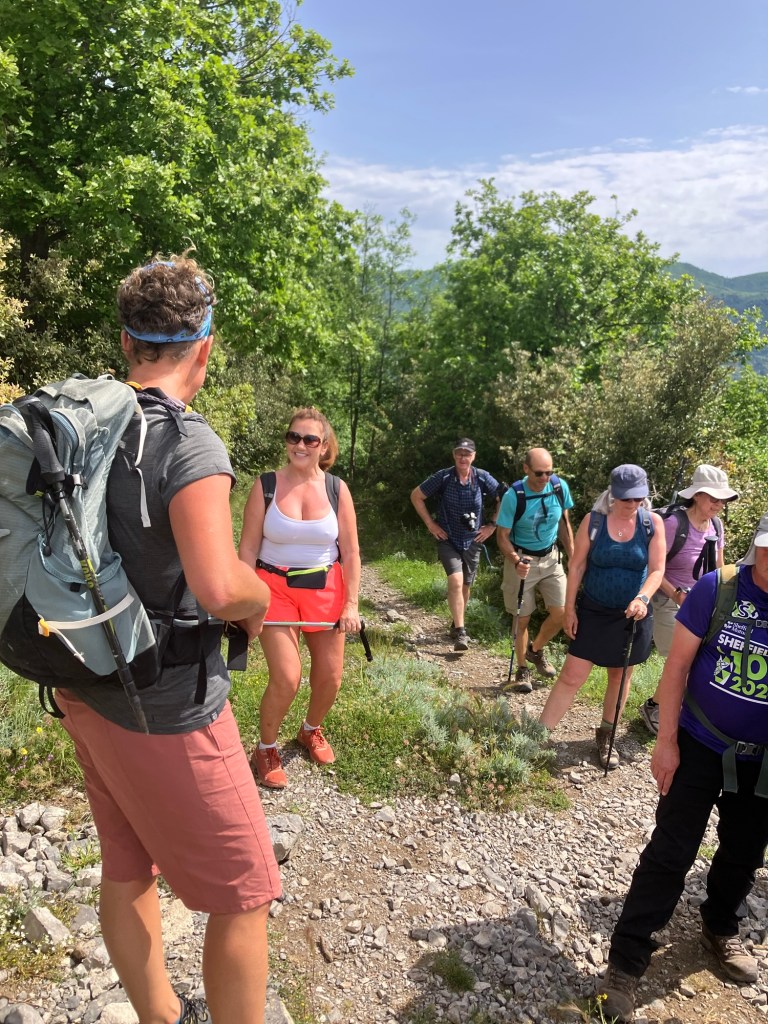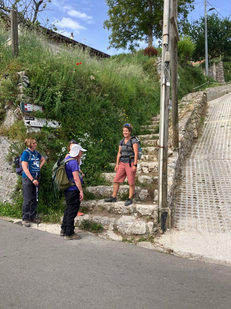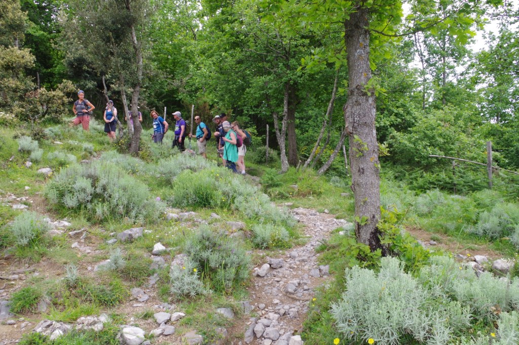 The walk started in the village of Bomerano, where I am staying. Passing through the village the climb began, initially on tarmac paths then limestone steps. At the top we found a tap to top up the water bottles.