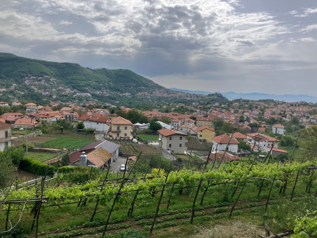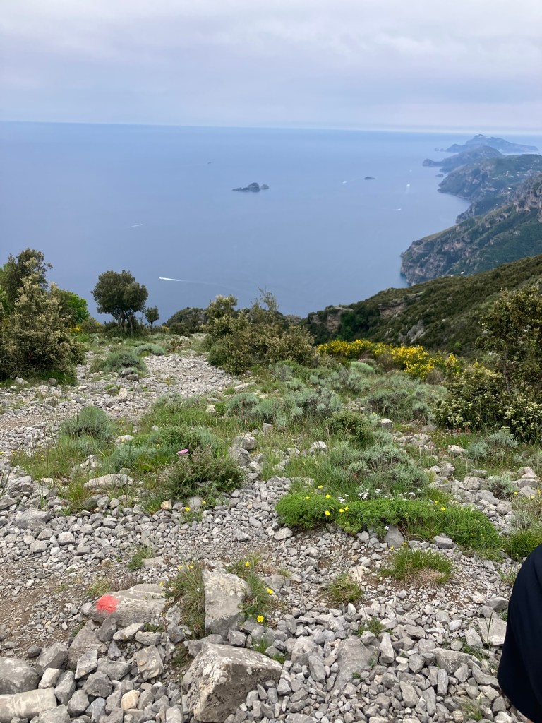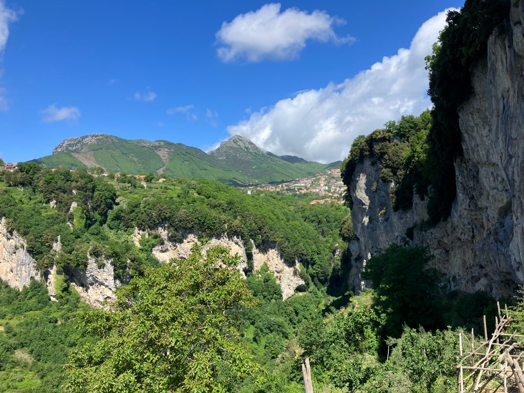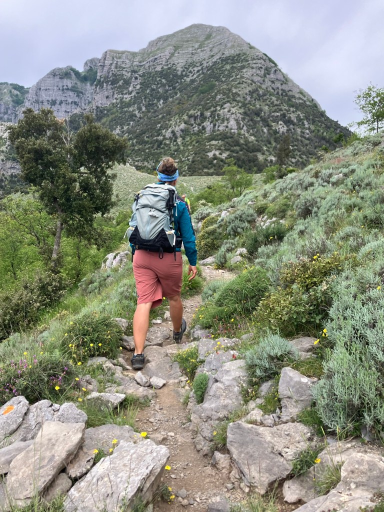 The walk started in the village of Bomerano, where I am staying. Passing through the village the climb began, initially on tarmac paths then limestone steps. At the top we found a tap to top up the water bottles.