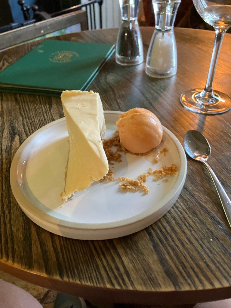 The food was very tasty, especially the rhubarb and ginger cheesecake which I would highly recommend. This i washed down with a fabulous negroni.
