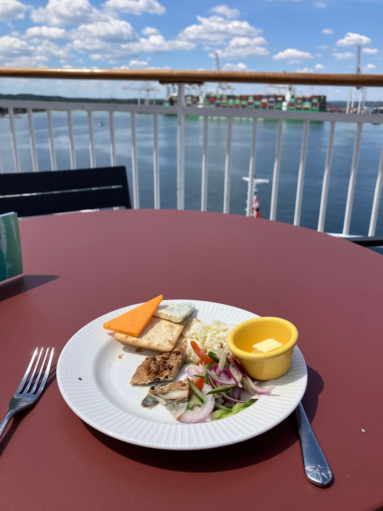 Left mid morning for Southampton. A34 was quiet and arrived at Mayflower terminal 11.30. Car dropped off outside the terminal and embarked a couple of hours early!